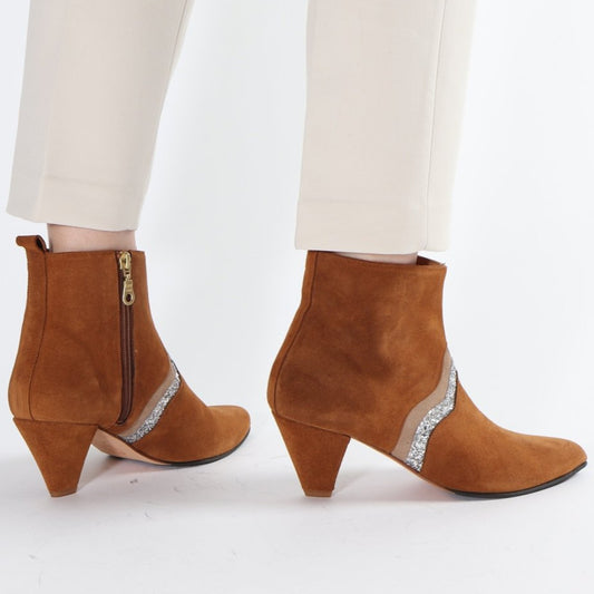 Karen Suede Cognac & Glitter