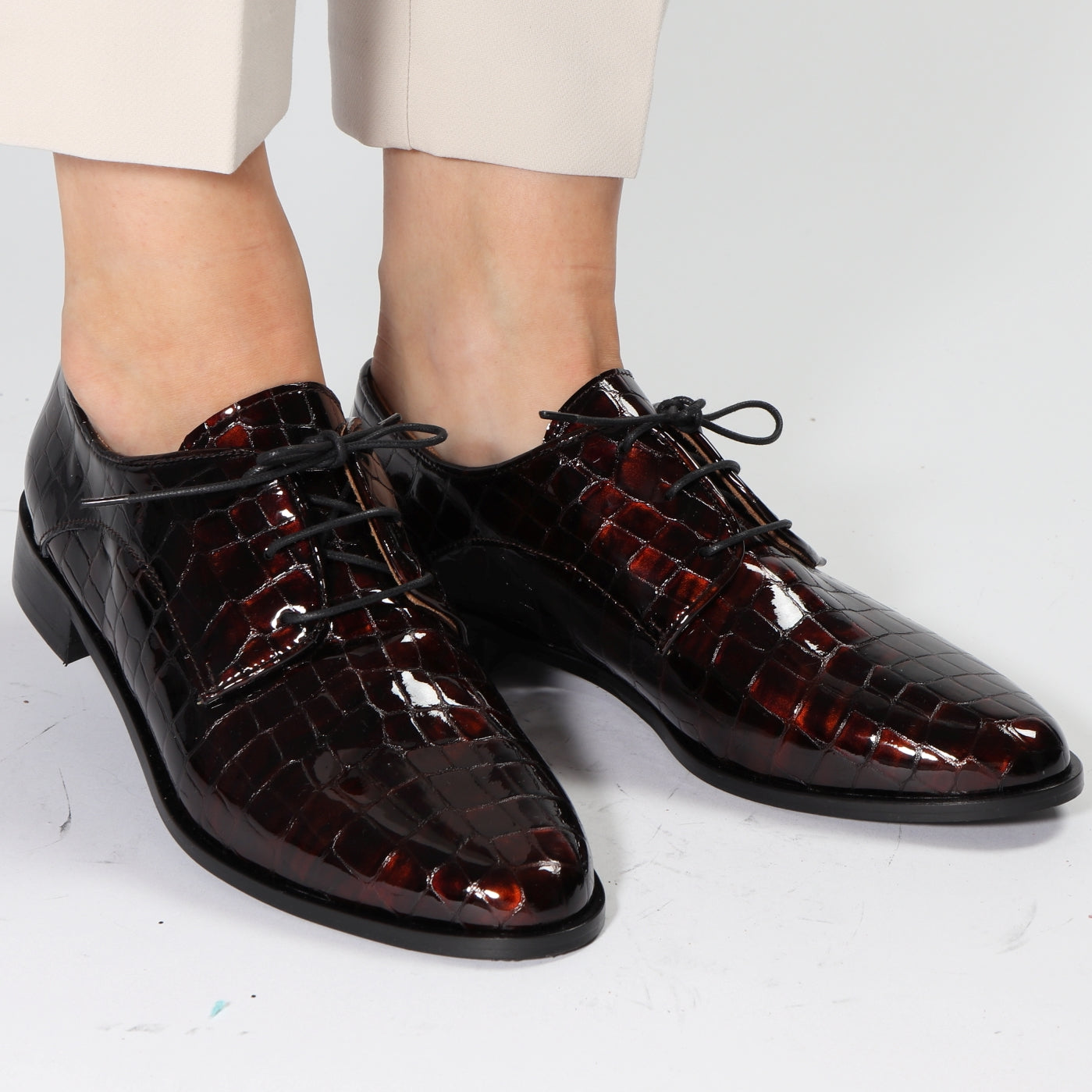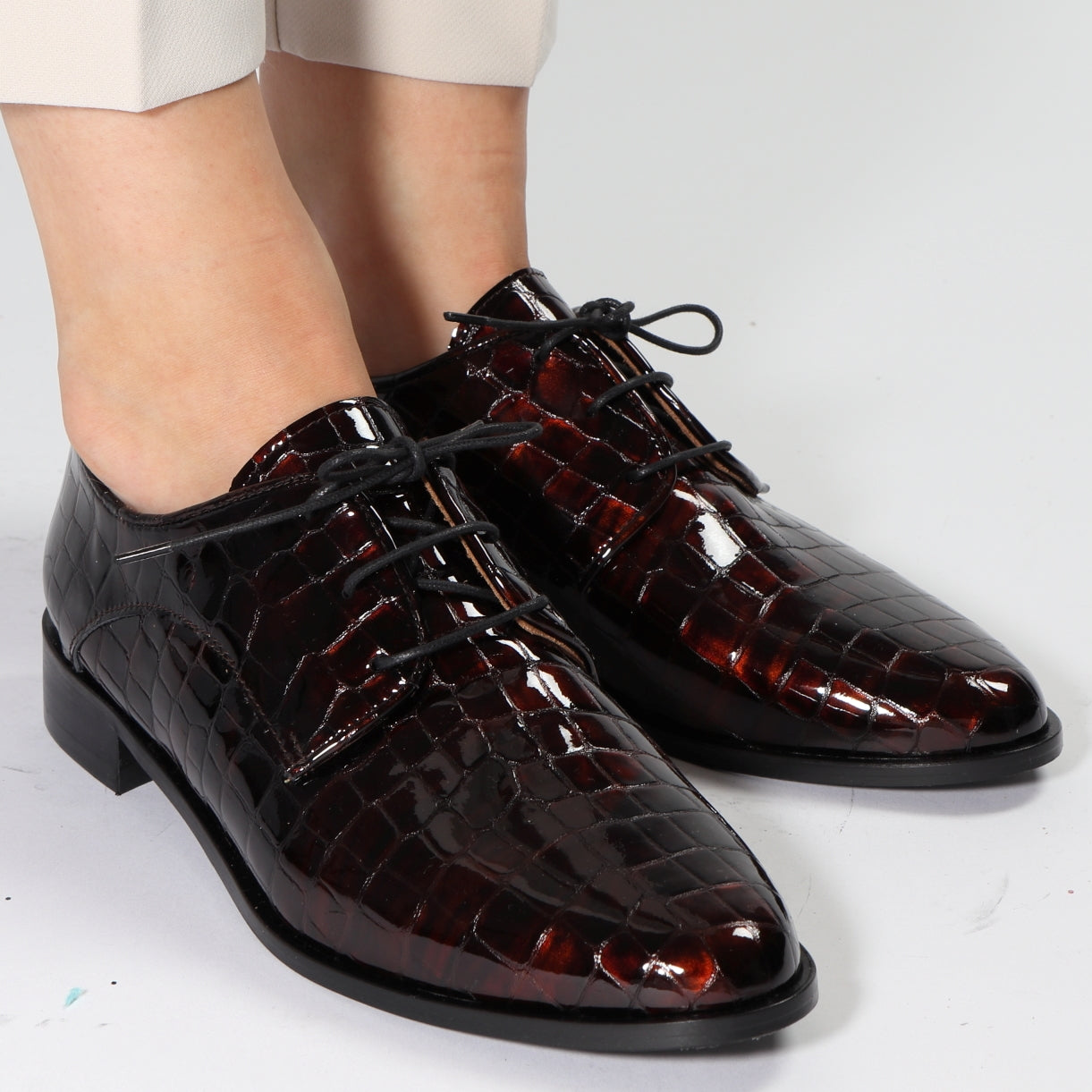 We’ve taken a classic Derby shoe and given it an Emma Go makeover and called the outcome Denise. This beautiful lace-up shoe comes in Confetti Glitter, Black Glitter, Pink faux-snake leather and Croc Tortoise.